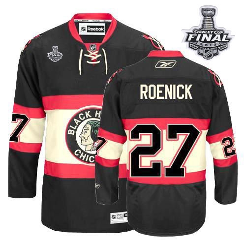 Wear what the players wear with this Jeremy Roenick Jersey Chicago Blackhawks 27 Authentic Black New Third Man With 2013 Stanley Cup Finals Jersey by Center Ice that replicates the player worn Pro-cut jersey in fabric, trim and team design! The fabric is four-way stretch mesh, which provides a balance of ventilation and range of motion in the underarm and back areas.