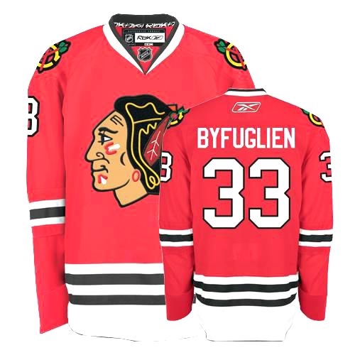 Wear what the players wear with this Dustin Byfuglien Jersey Youth Chicago Blackhawks 33 Authentic Red Home Jersey by Center Ice that replicates the player worn Pro-cut jersey in fabric, trim and team design! The fabric is four-way stretch mesh, which provides a balance of ventilation and range of motion in the underarm and back areas.