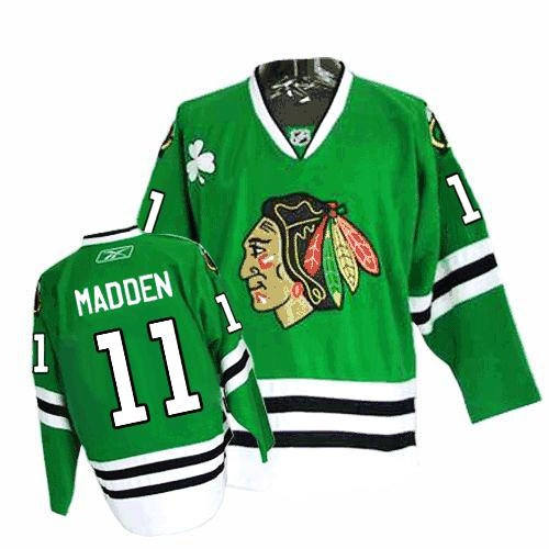 Wear what the players wear with this John Madden Jersey Chicago Blackhawks 11 Authentic Green Man Jersey by Center Ice that replicates the player worn Pro-cut jersey in fabric, trim and team design! The fabric is four-way stretch mesh, which provides a balance of ventilation and range of motion in the underarm and back areas.